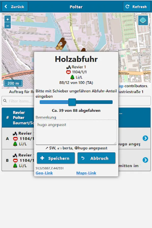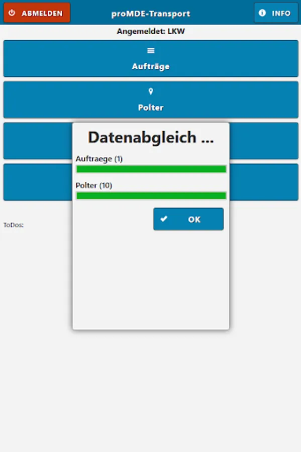 With proMDE-Transport we offer our proFBG customers a solution that can be used to conveniently process removal orders assigned by mobile workers on site by forest workers or contractors and to synchronize them with our desktop application proFBG via mobile network / WLAN.