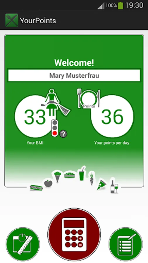 By entering information such as weight, height and so it is possible to show your current BMI value. A traffic light status shows you the BMI status. Click on the BMI button and you will get information about the traffic light phases.