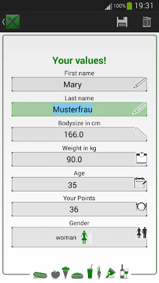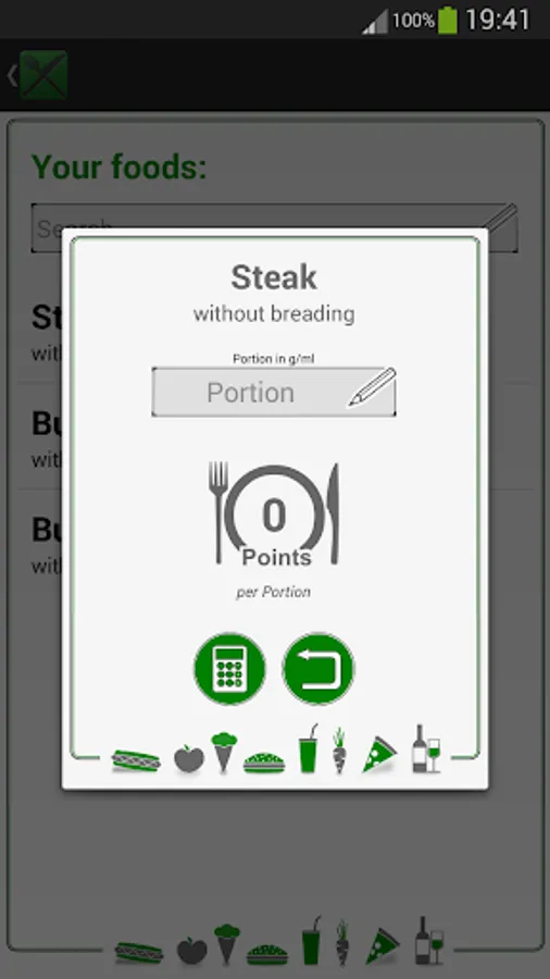 Calculate your points of any food you want based on the nutritional information per 100g/ml. You have the possibility to save your foods in a list so you do not have to start each time entering the nutritional values from the beginning. By simply clicking on the foods in the list, you can immediately calculate your points for your chosen serving. If you ever made an incorrect entry or the nutritional values of the food have changed you can easily modify your foods. You can also delete foods from the list.
