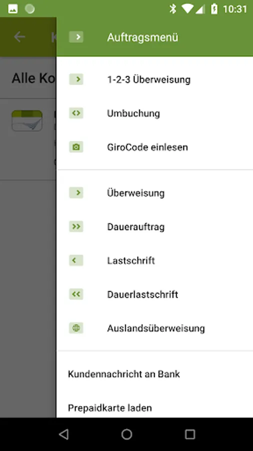 • Transfers, fixed-term orders, standing orders, collective transfers, direct debit, SEPA bookings, international transfers