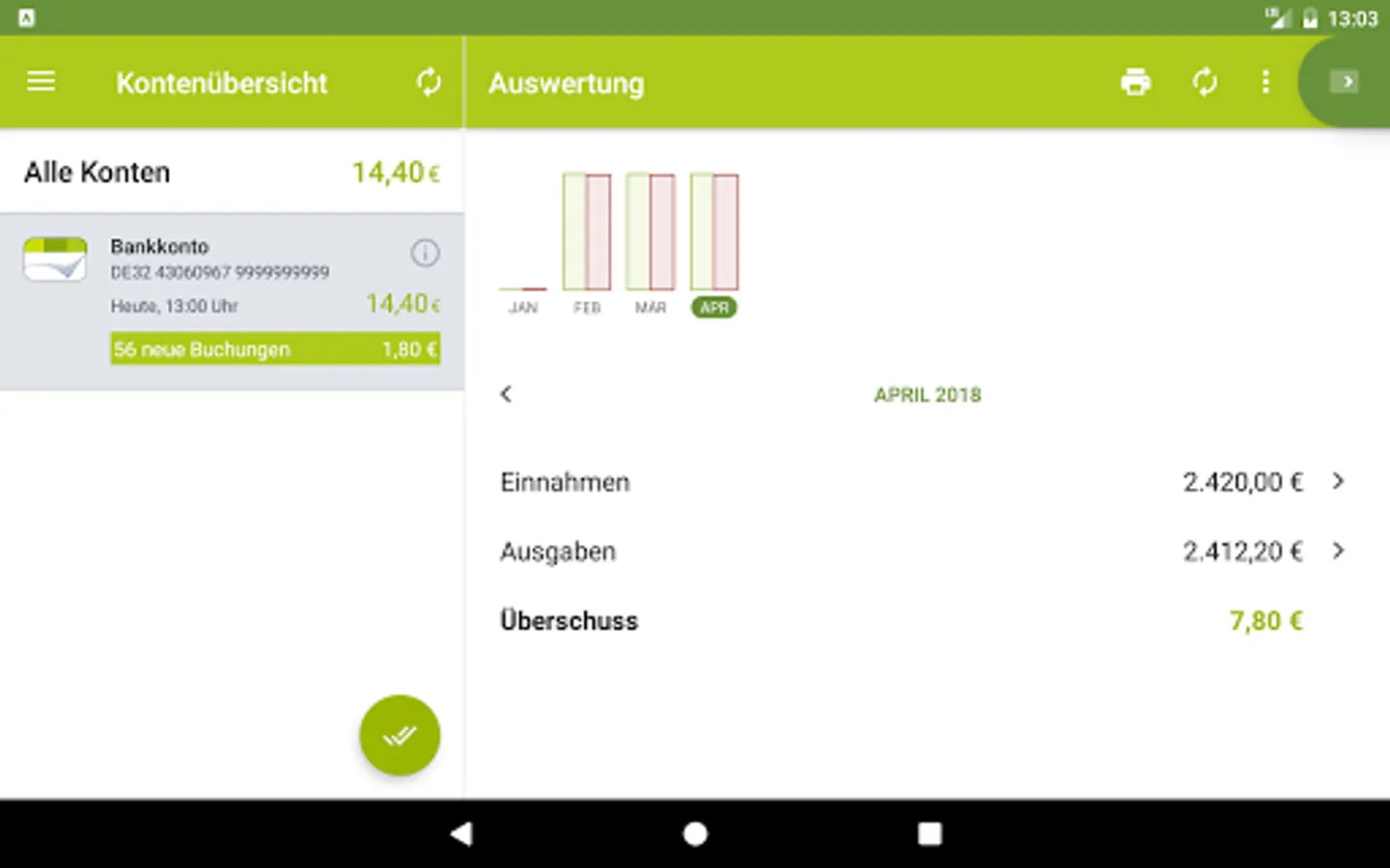 Our proven banking app: multi-bank capable, full range of functions with personal financial management and tested "good" by Stiftung Warentest.