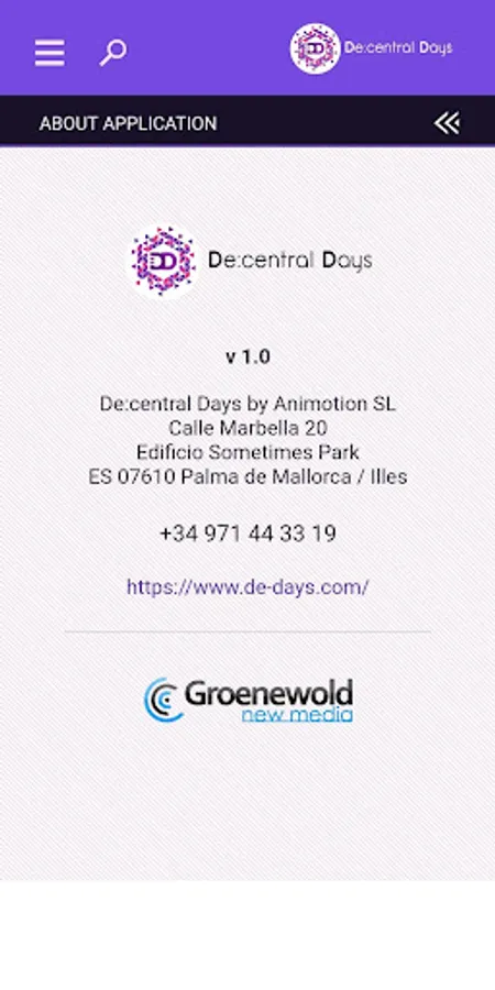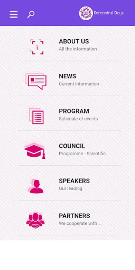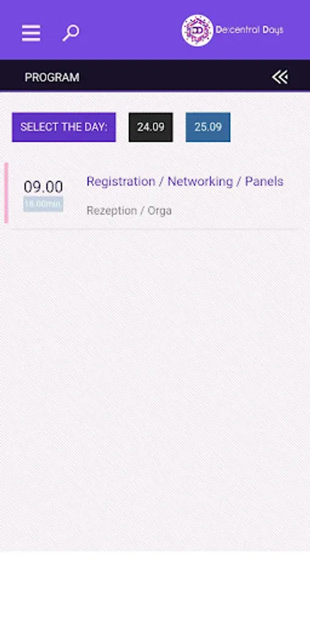 The App contains information like the program, speakers and a lot more of the De:central Days event.