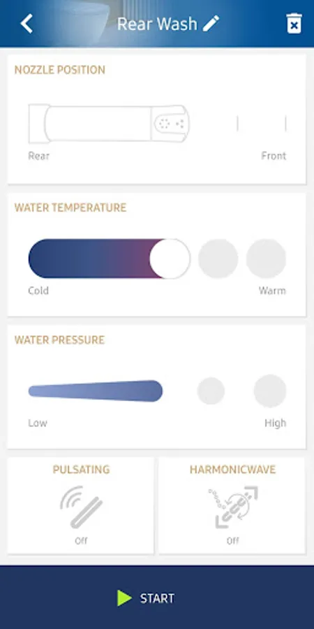 Neben einer Fernbedienungsfunktion ist die App mit weiteren verschiedenen Einstellungsmöglichkeiten ausgestattet. Die Einstellungsmöglichkeiten sind: Einstellung der Temperatur, Duschstrahlarten, Düsenposition und Wasserstärke.