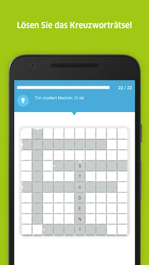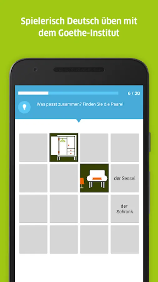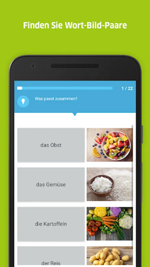 10 chapters guide you through vocabulary and structures on topics of German daily life. You practice names of food items, furniture and professions. You practice numbers, telling time and paying in a restaurant. You listen to some friends plan a trip. The app combines listening, reading and writing and helps you practice basic vocabulary.