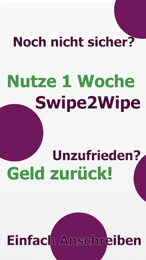 Not convinced yet? 100% Money Back Guarantee: Try the Swipe2Wipe app for a week and if you're not satisfied, we'll refund your purchase price!
