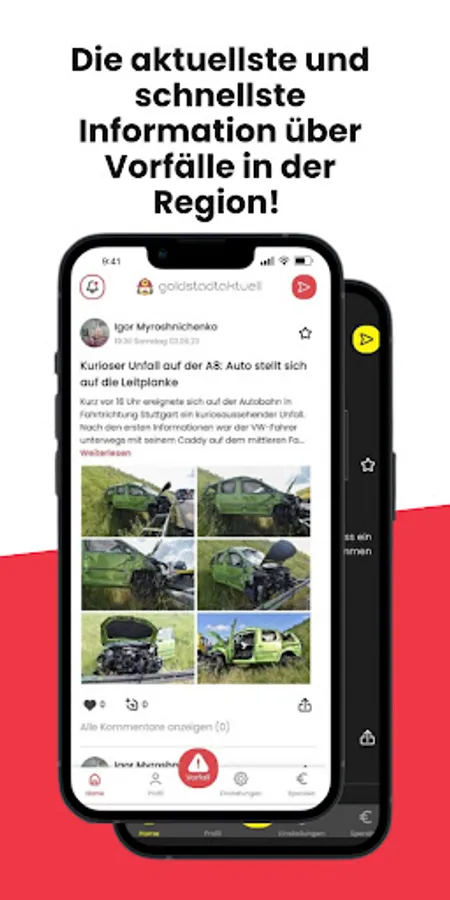 In the GoldstadtAktuell app you will find out the incidents, accidents, fires and other events in one place. In the joint chat you can exchange ideas with other app users in real time. With the integrated reporting function, you can easily transmit information about an incident and make GoldstadtAktuell even better!