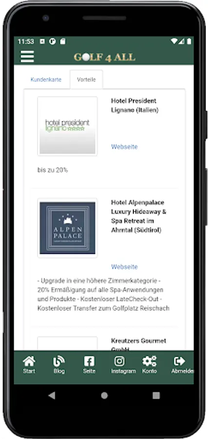 Mit der Golf4All App können Sie bequem Ihren Vorteilkarte und Ihre Fernmitgliedschaft verwalten.