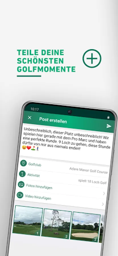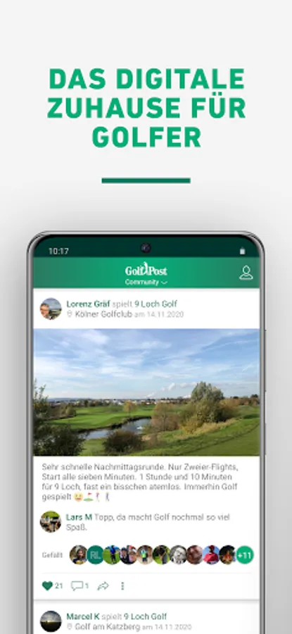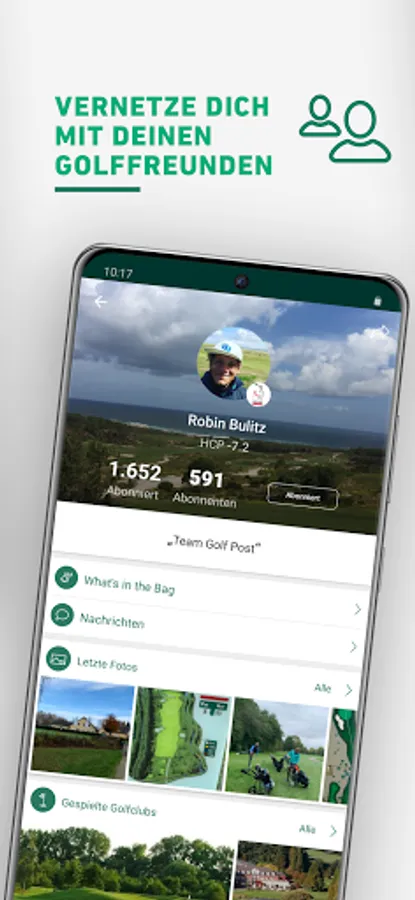 Golf Post is the platform for all golfers. Share your best moments on the golf course with the golf community, discover golf courses near you and rate your last visit to the golf club. In addition, you can meet new golfers and network with golf courses from your region. All this in one app!