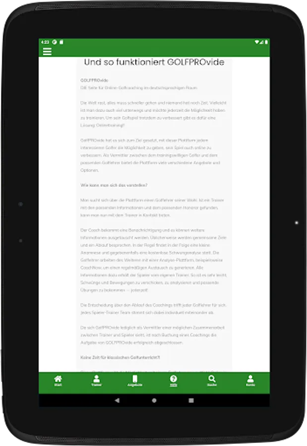 As a service platform, we offer golfers of all skill levels the opportunity to find their own online coach. After contacting a trainer, your game can now be improved through the exchange in online coaching.