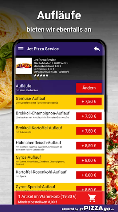 Pizza Tonno, Pasta Pollo al Forno with paprika, broccoli and cream sauce, Pizza-Haus & Crown Food has Pizza Pollo for only €6.50-16.50, Pizza Bolognese will be delivered to you for €6.00-13.50 to your current location, Pizza Romantica to almost every district. Pizza-Haus & Crown Food offers you Pizza Capricciosa for only €6.50-16.00 or Pizza Napoli offers you Pizza-Haus & Crown Food for only €5.00-12.00.