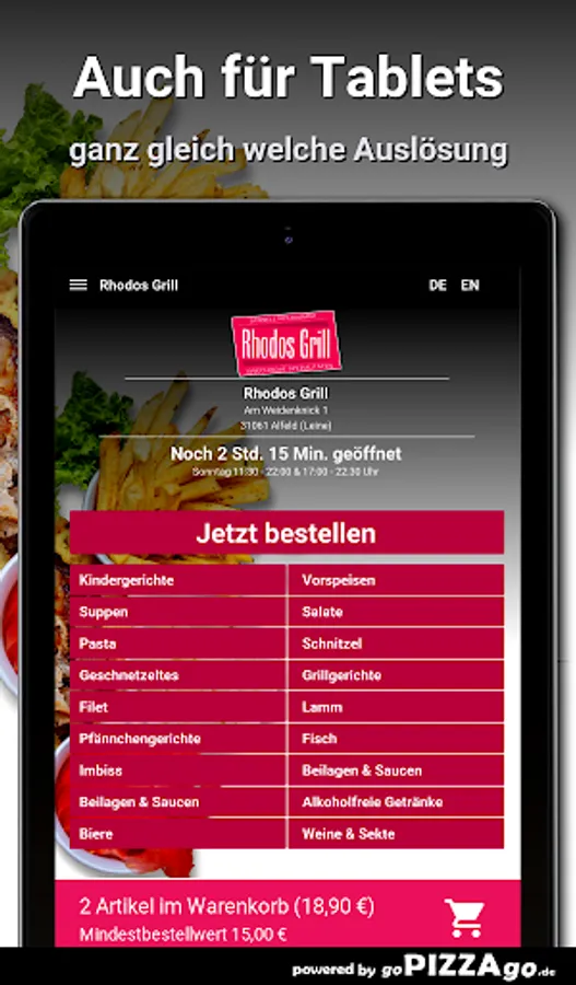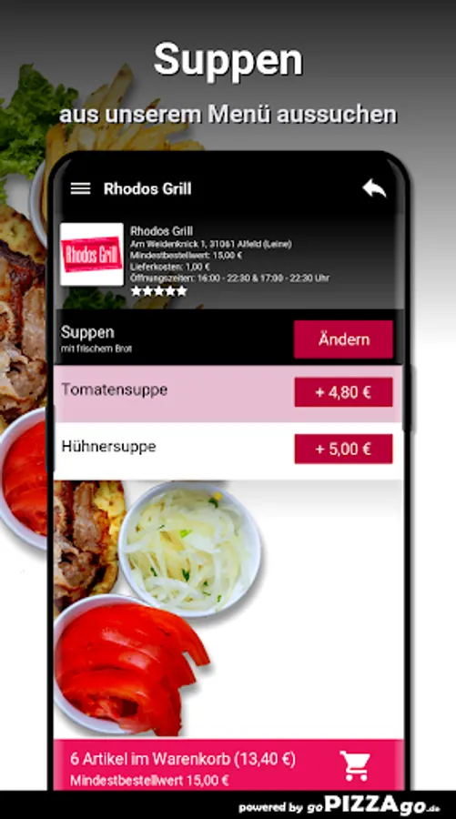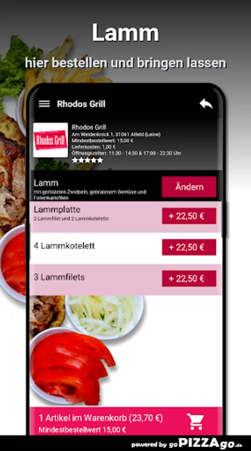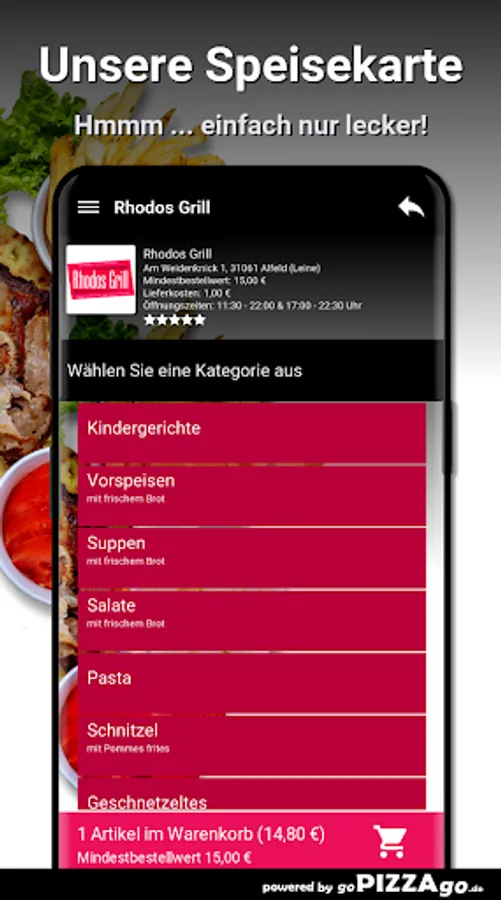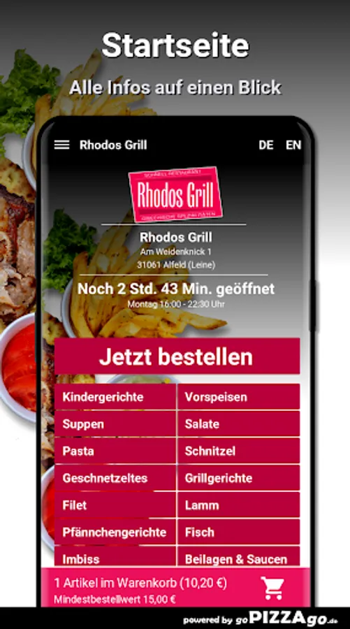 Rhodos Grill - your home service in Alfeld (Leine) With us, of course, there are sliced meats, pasta, snacks, grilled dishes, soups, lamb and fish to order online and have them delivered.