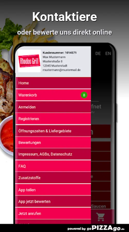 Lamb salad can be delivered to your place of residence for 13.80 euros, rooster salad and tonnosalat can be ordered for 11.80 euros. Your Rhodos Grill Team