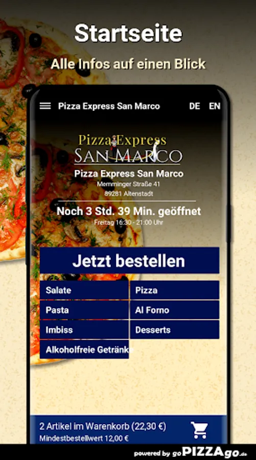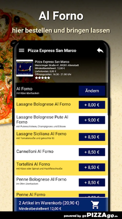 Pizza Express San Marco - your home service in AltenstadtAt Pizza Express San Marco you can get snacks, pasta, Al Forno, pizza and salads.