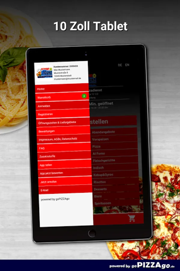 You can order quickly and easily from a large selection of varied dishes in our pizza service and, of course, have them delivered. A variety of 213 dishes such as chili chicken, Alexander special salad, tortellini, Jägerart chicken breast fillet, pizza, peas, corn, broccoli, spinach, pasta Frutti di Mare or 10 chicken wings for € 6.50