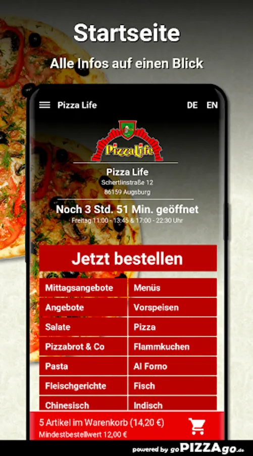 Pizza Life - Order food in Augsburg At Pizza Life you can order wraps, burgers, pasta, pizza, Al Forno, fish, Chinese online and have them delivered.