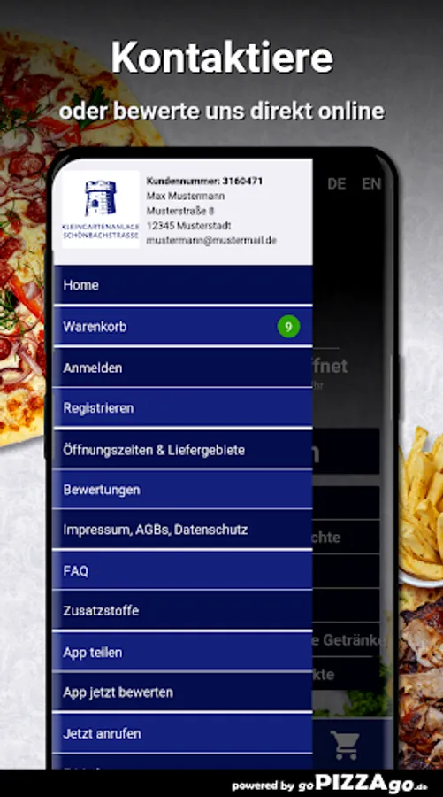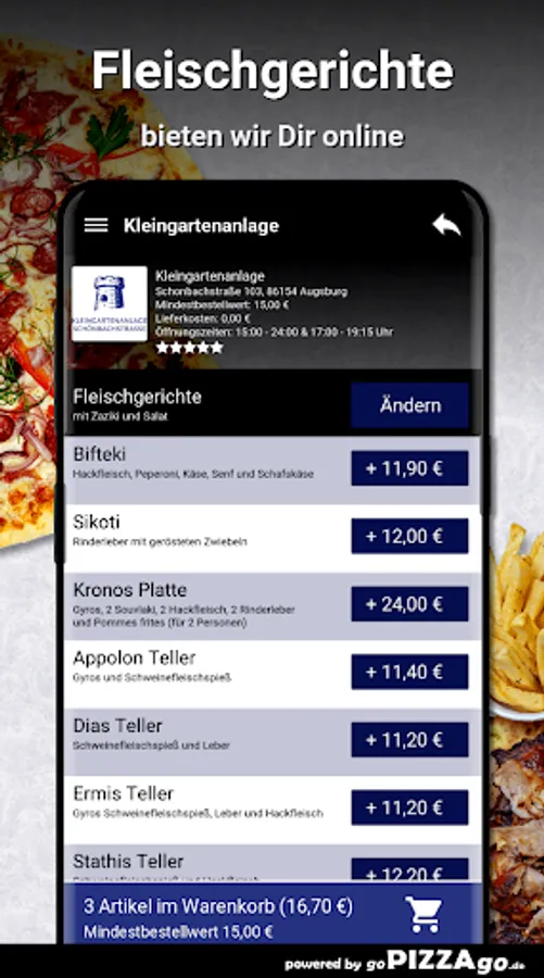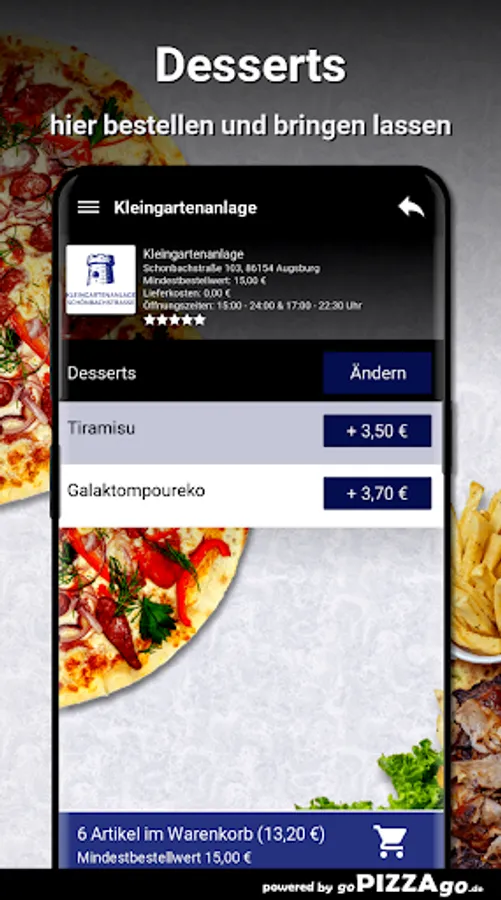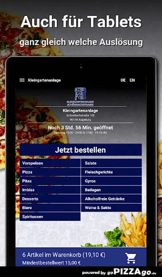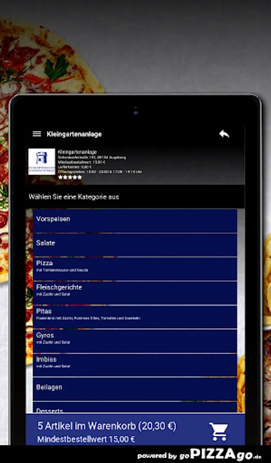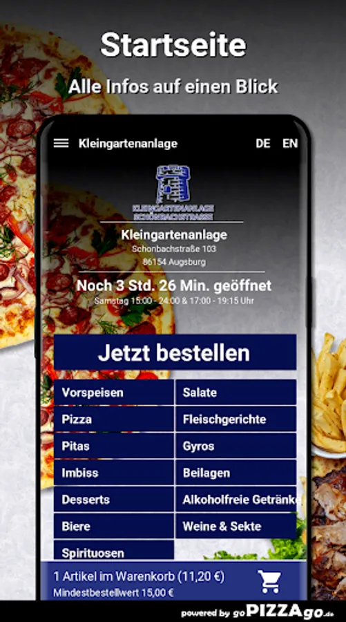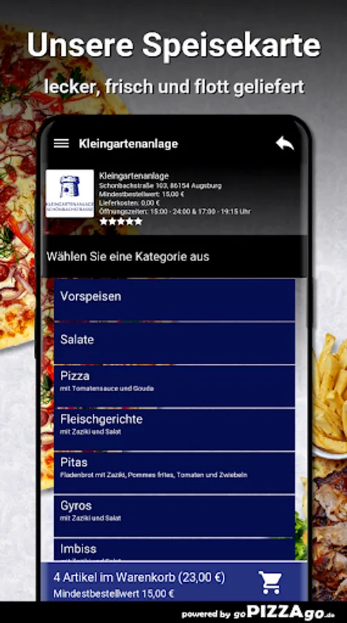 Allotment garden facility - your delivery service in AugsburgWith allotment garden facility you can order salads, pitas, starters, pizza and meat dishes online!