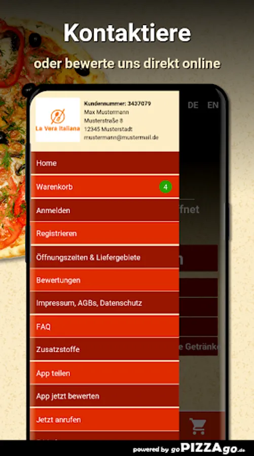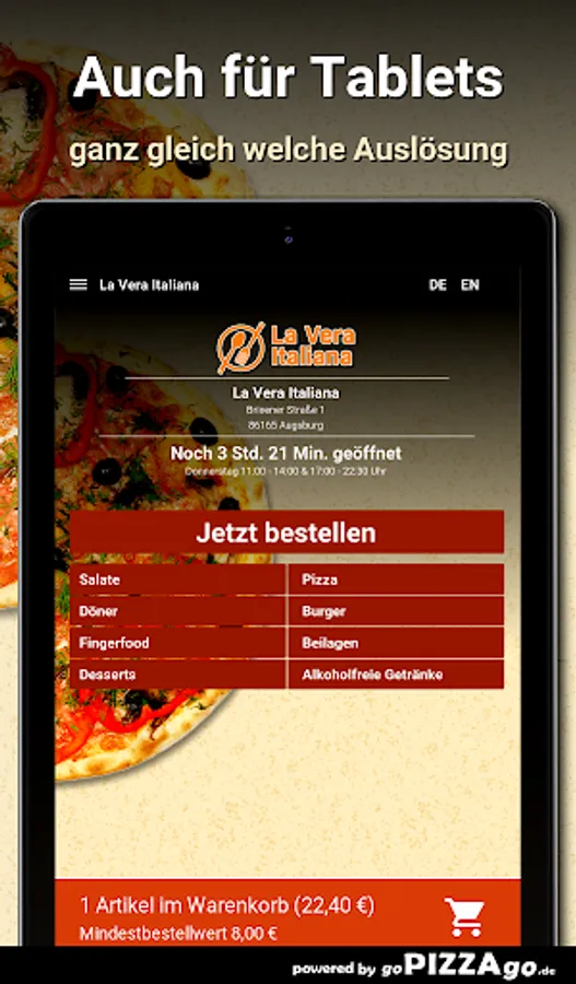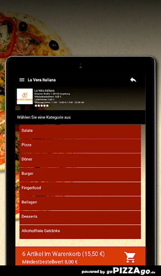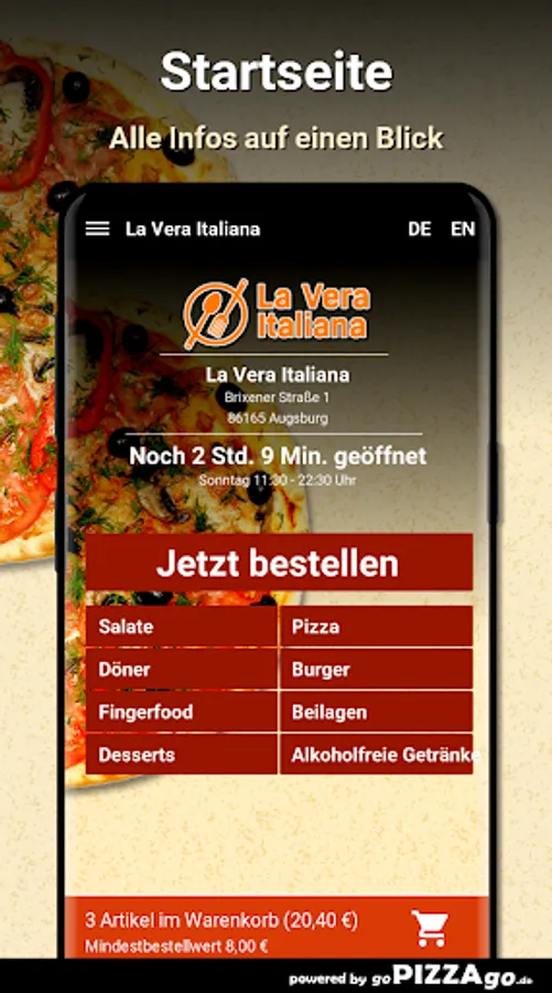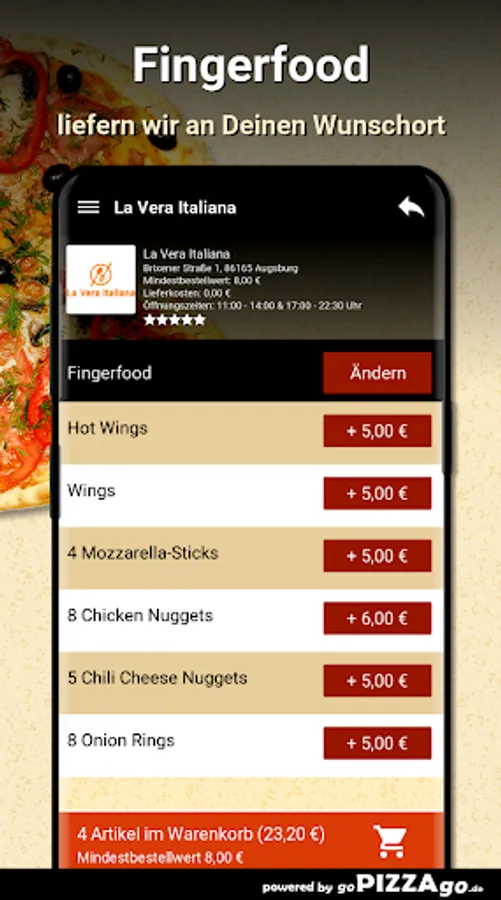 Welcome to our pizza service La Vera Italiana, order finger food, pizza, kebab, salads and burgers online.