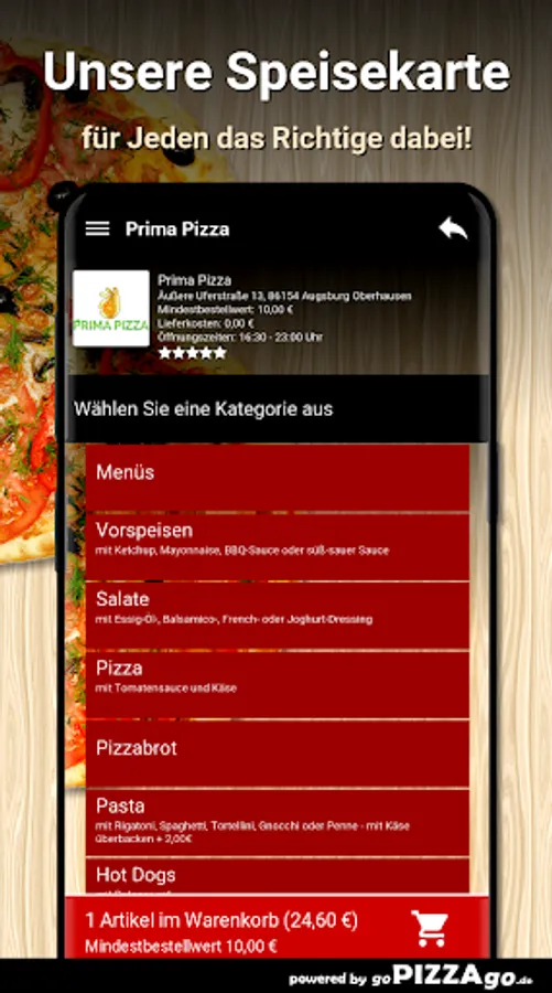 Prima Pizza - Have tasty things delivered to Augsburg OberhausenWith us you can of course order wraps, pasta, pizza, salads, appetizers and hot dogs online.