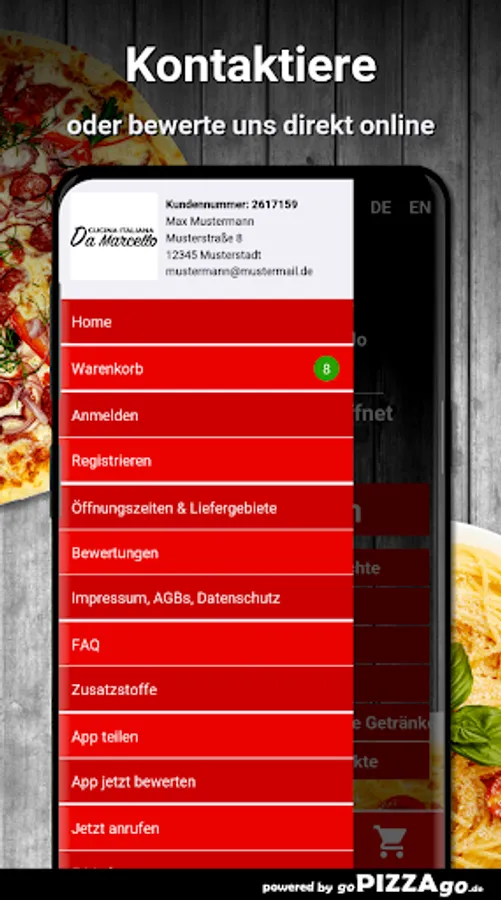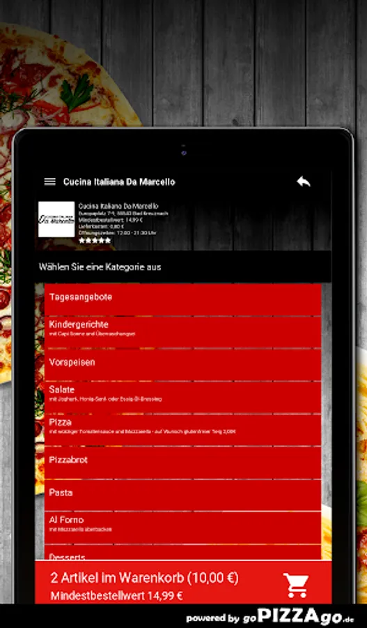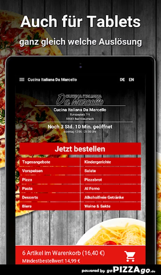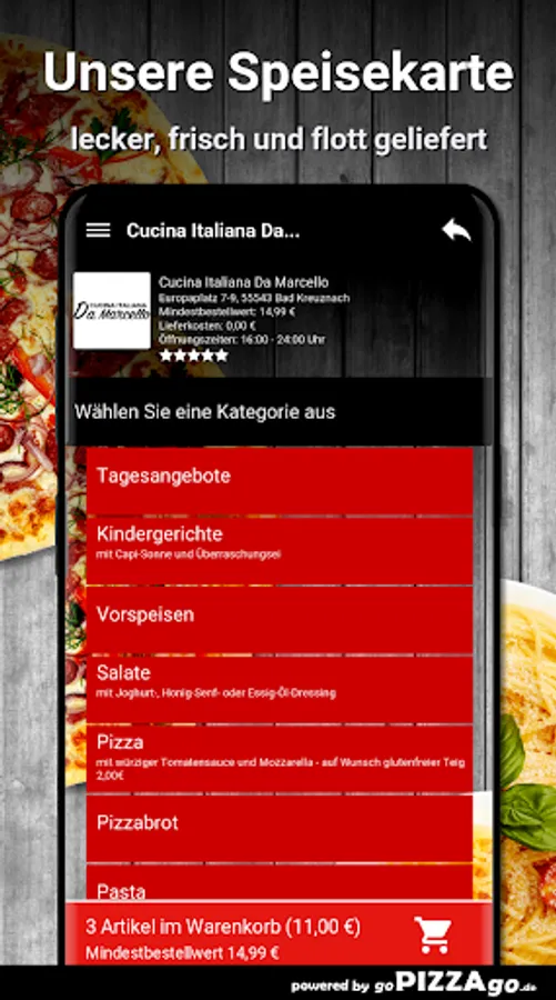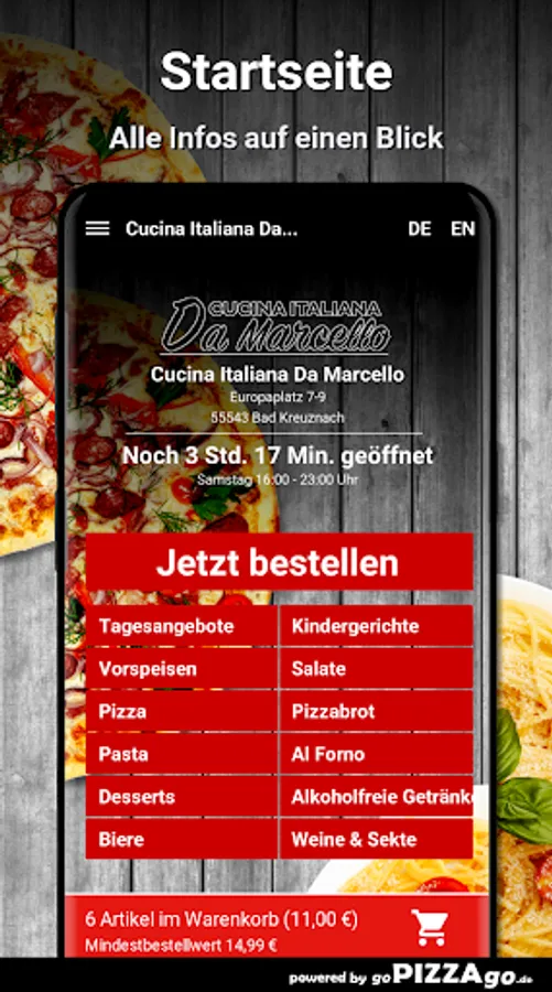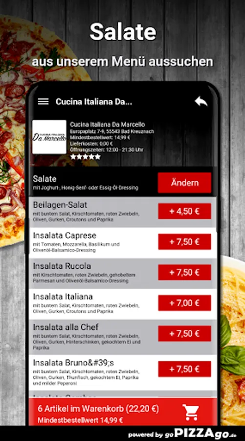 Cucina Italiana Da Marcello - Your delivery service in Bad KreuznachYou have a huge hunger for pasta, pizza bread, salads, pizza ... freshly prepared to pick up or just have it delivered?
