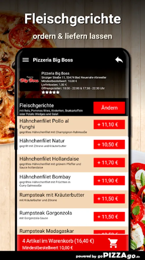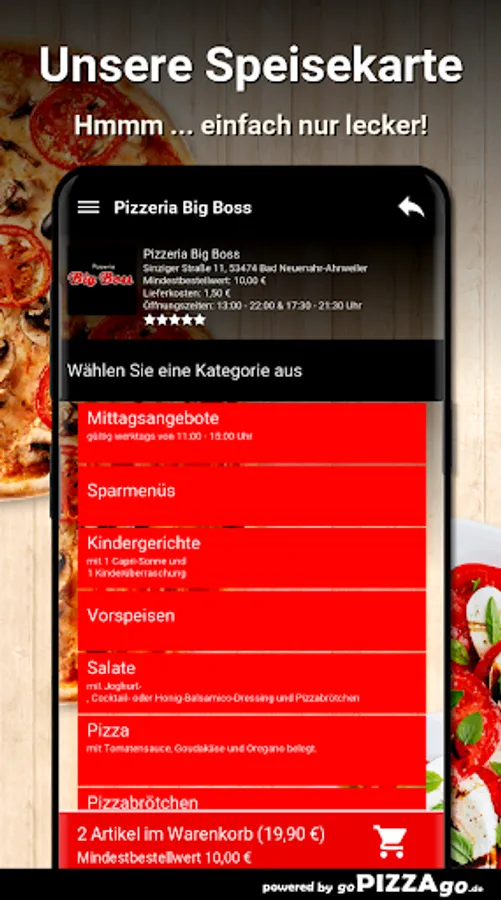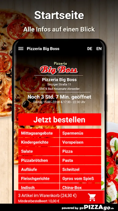 Pizzeria Big Boss in Bad Neuenahr-Ahrweiler - we deliver your food! You want schnitzel, pasta, pizza rolls, pizza, snack, china box, Indian to order and have it delivered ???