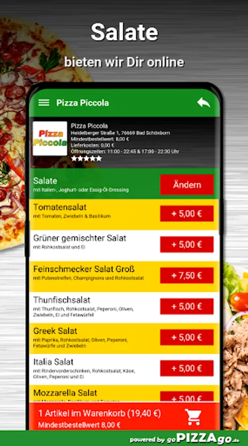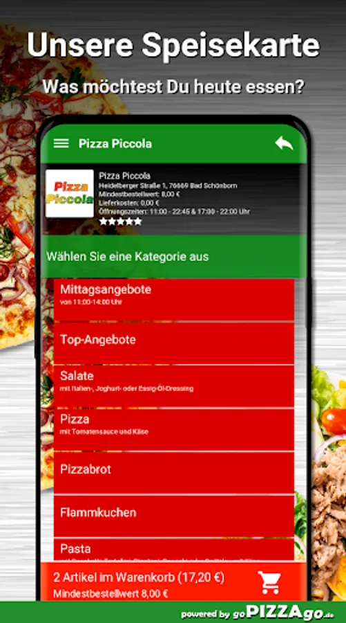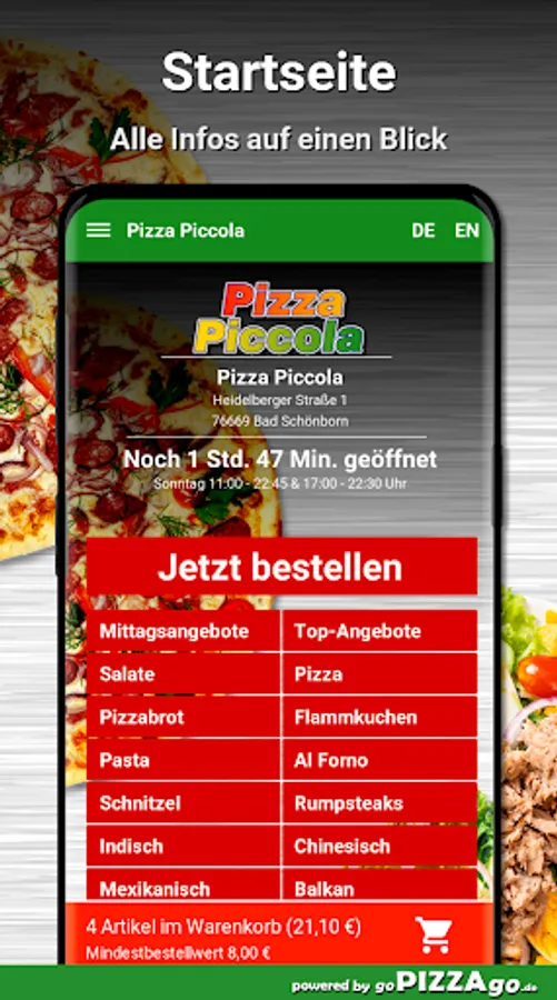 Nothing easier than that: Order pizzas in Pizza Piccola Bad Schönborn. Our 36 pizzas in breathtaking flavors are a delicious dish for young and old. Pizza Piccante is available for 7.00-19.00 euros.
