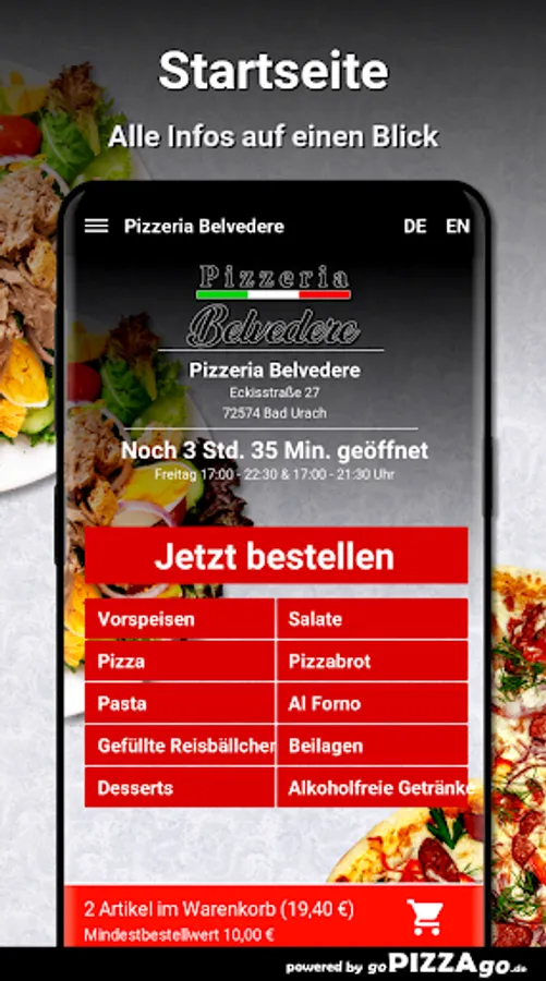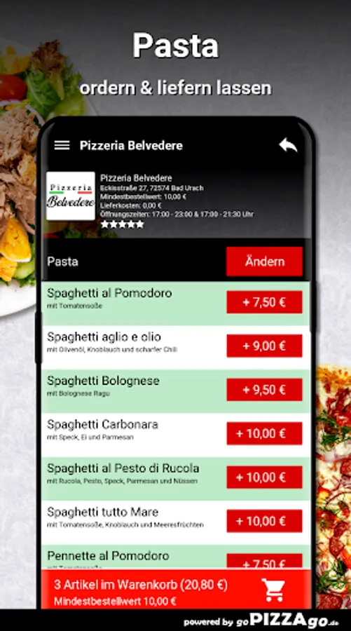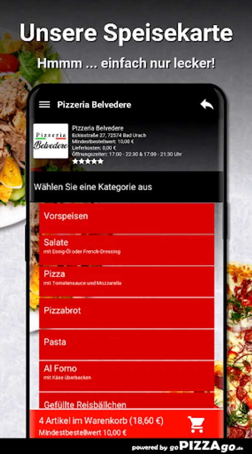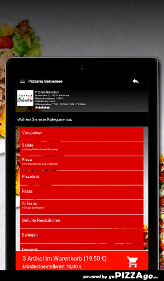 Order Italian dishes at Pizzeria Belvedere Bad Urach and have them delivered