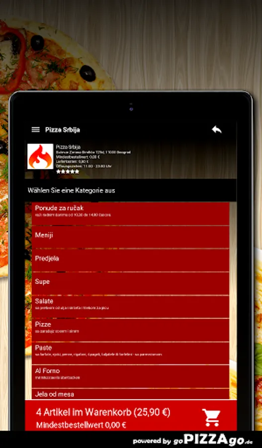Let the delivery service Pizza Srbija seduce you with the Mediterranean way of life of Italian cuisine! The Italian cuisine at Pizza Srbija is very varied and tasty. Choose from 10 dishes of Italian cuisine. Really good pizza Bianca sa paradajz sosom i sirom is available here online for only 900.00 to 1,500 euros. Gnocchi al Forno cream sauce is available for €9.90, you can get Frutti di Mare salad for €9, lasagna baked with mozzarella, excellent pizza Vesuvio Pelat, šunka, mocarela, masline.