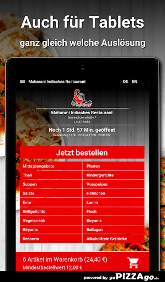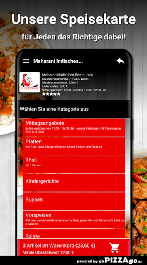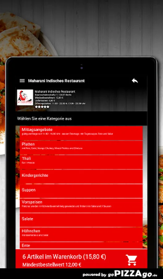 Maharani Indian Restaurant - Your home service in Berlin At Maharani Indian Restaurant you can definitely order salads, thali, starters and soups online.