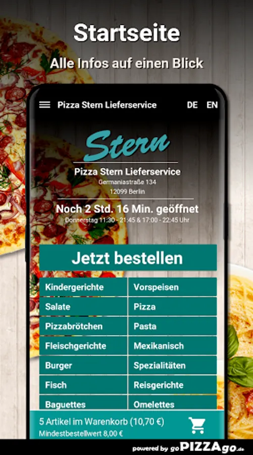 Welcome to our Pizza Service Pizza Star Delivery ServiceHunger in German, Italian, American?