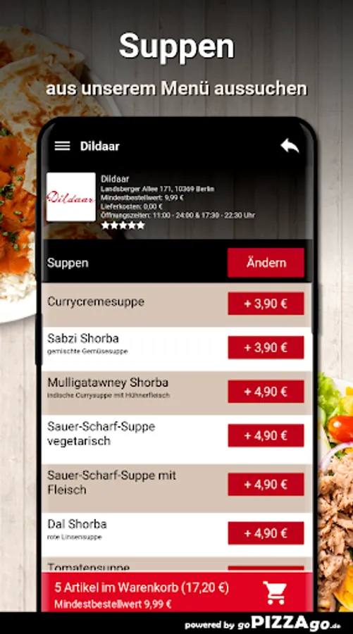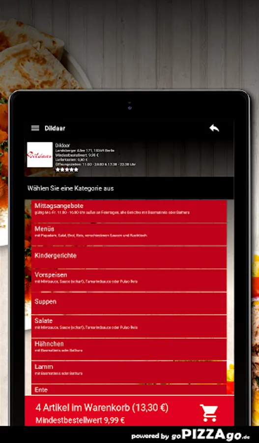 Order food online at Dildaar Berlin Are you hungry for soups, sauces, tandoori, salads, chicken to order and have it delivered?