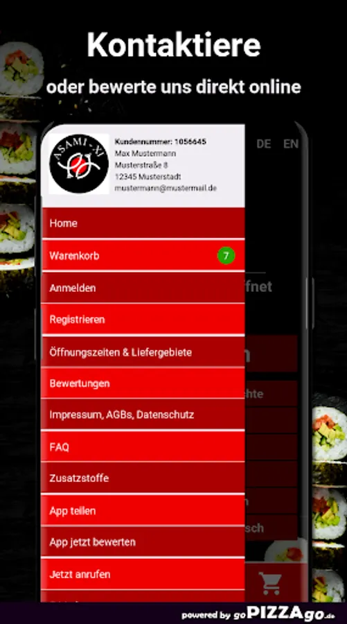 You can order many feasts online from our easy delivery service. A great selection of 230 dishes such as Asami Tempura Roll with prawns grilled river eel avocado, red curry with prawns, sweet and sour sauce with beef, Nigiri Maguro, Asami Tempura Roll Vegetaria, Nigiri Sake or Tekka Cream Cheese Maki for 4.40 EUR . Delicious and really cheap - our lunch specials such as menu with red curry and chicken, menu with chopsuey sauce, menu with red curry and tofu, menu with sweet and sour sauce and chicken, menu with sweet and sour sauce and tofu, menu with Sweet and sour sauce and chicken breast, menu with chopsuey sauce and chicken, menu with sweet and sour sauce which you can have quickly delivered