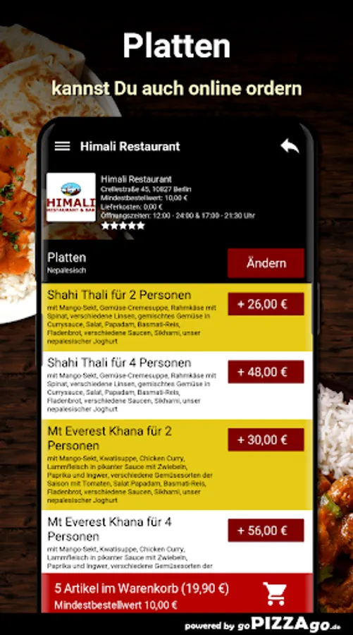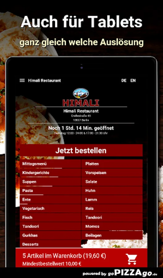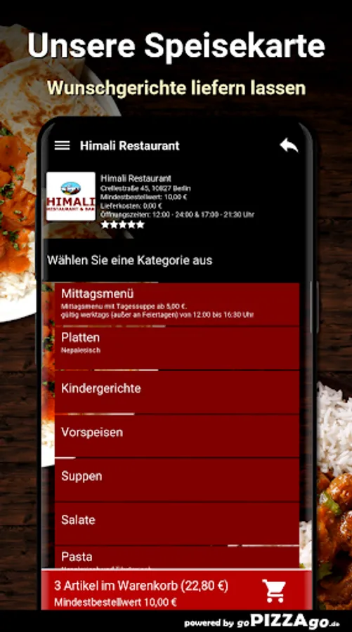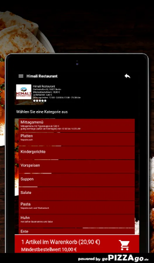 Welcome to Himali Restaurant in Berlin! How about lamb, chicken, gurkhas, fish to be delivered or picked up?
