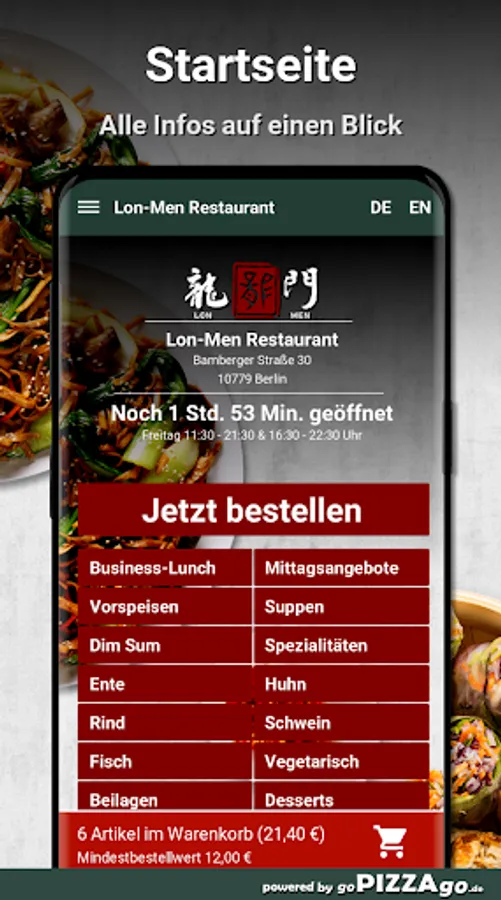 Order food online at Lon-Men Restaurant BerlinWe offer dim sum, business lunch, chicken, vegetarian, soups and duck online.