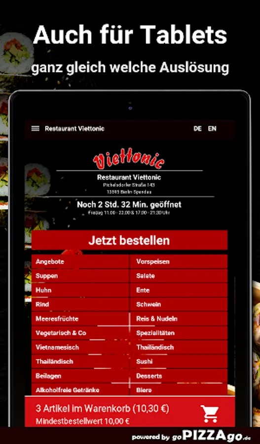 Welcome to Restaurant Viettonic - your delivery service for soups, Vietnamese, duck