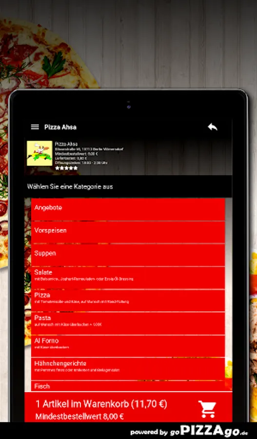 Welcome to Pizza Ahsa in Berlin Wilmersdorf! Are you in the mood for ciabattas, starters, omelettes in Berlin Wilmersdorf to have them delivered or picked up?
