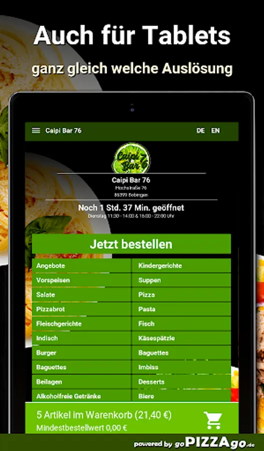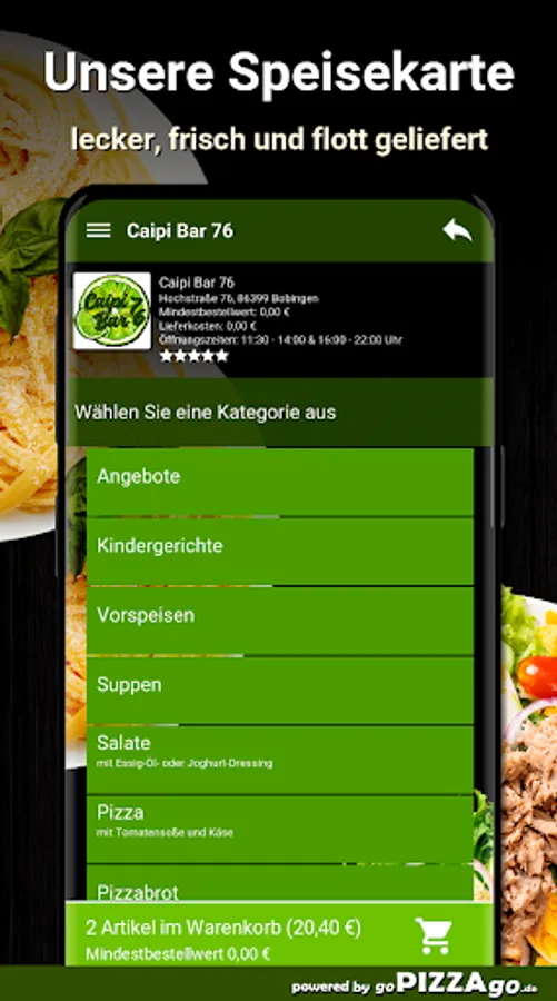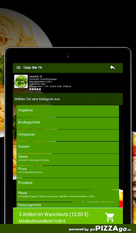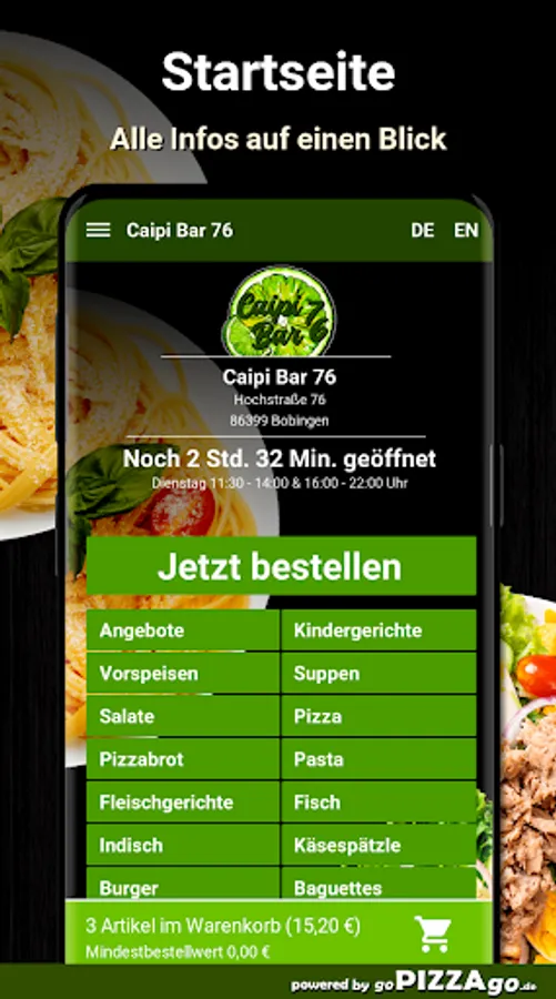 Caipi Bar 76 - Order food in BobingenAt Caipi Bar 76 you can definitely order pizza, starters, meat dishes and Indian online.