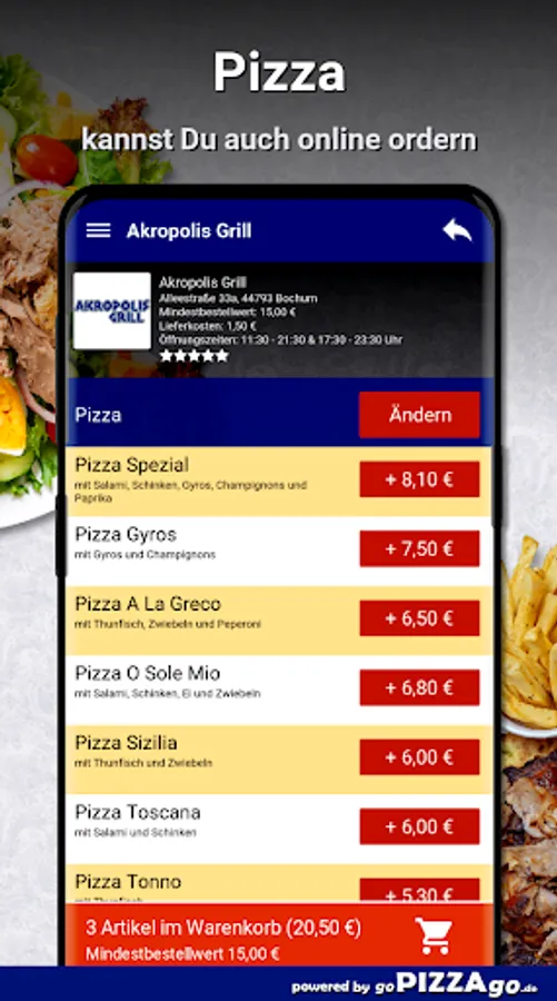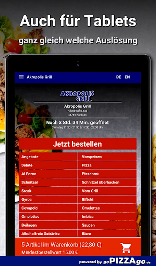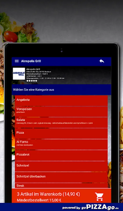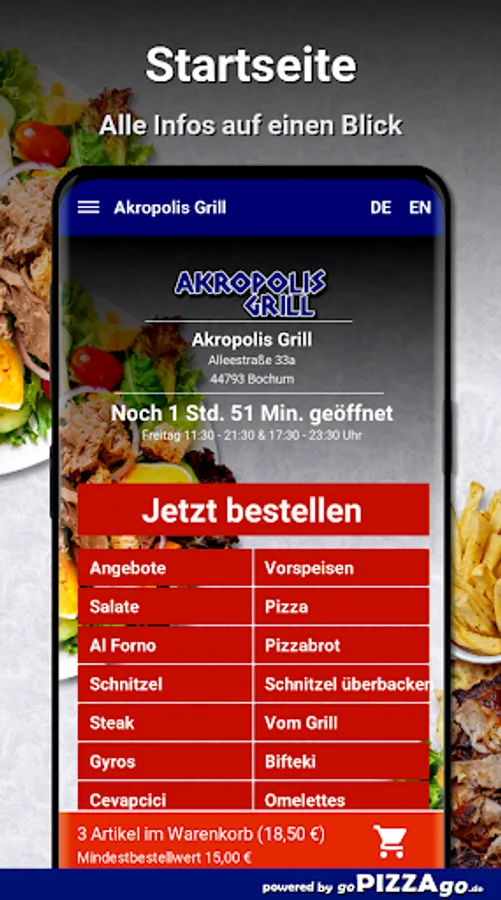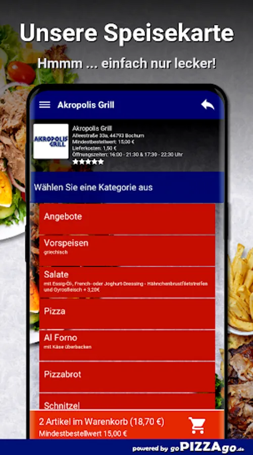 Welcome to Akropolis Grill in Bochum! Do you love schnitzel, pizza, salads, starters and gyros to order online?
