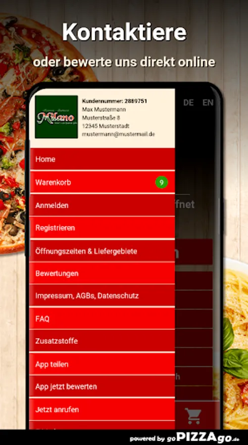 You can order many delicious specialties online from our easy pizza service. In our menu you will find 200 dishes such as Scaloppina al Gorgonzola, 6 pizza rolls, herb cream, Scaloppa alla Franco or Tagliatelle Contadina for 6.50 EUR. What are our top dishes? The delivery times of Pizzeria Milano