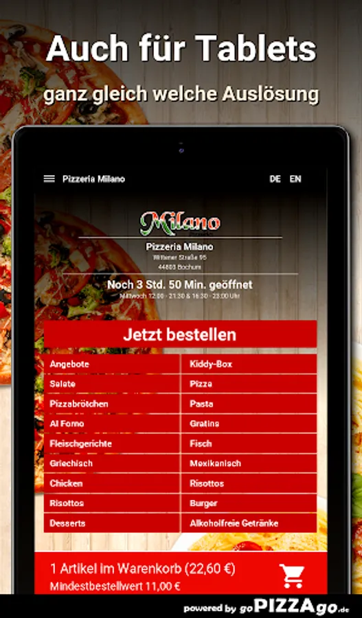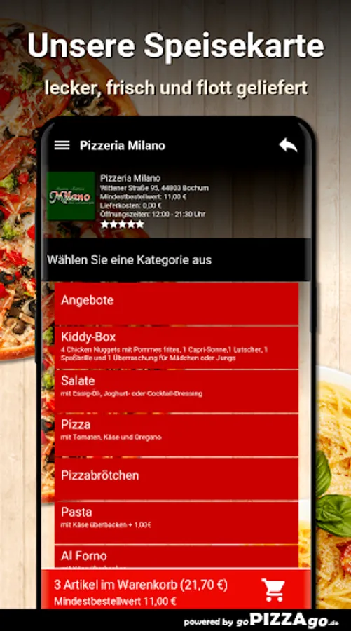 Welcome to Pizzeria Milano in Bochum. Are you hungry in German, French, Italian?
