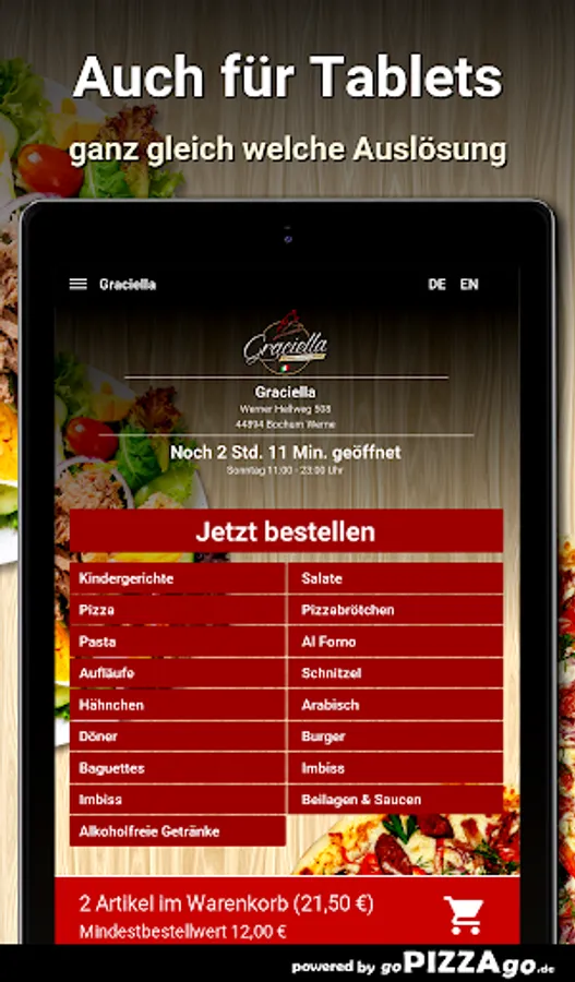 Graciella - delicious food delivered to Bochum WerneYou are in the mood to eat Al Forno, schnitzel, pizza, Arabic to order safely here and have it delivered?