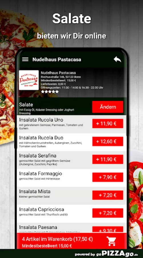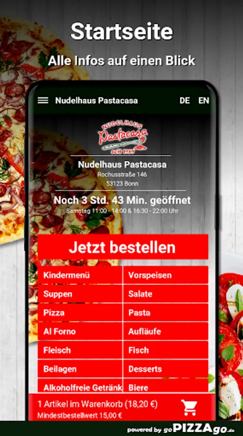 Nudelhaus Pastacasa - have something really delicious delivered to Bonn At Nudelhaus Pastacasa you can order pizza, pasta, starters, salads and Al Forno online.