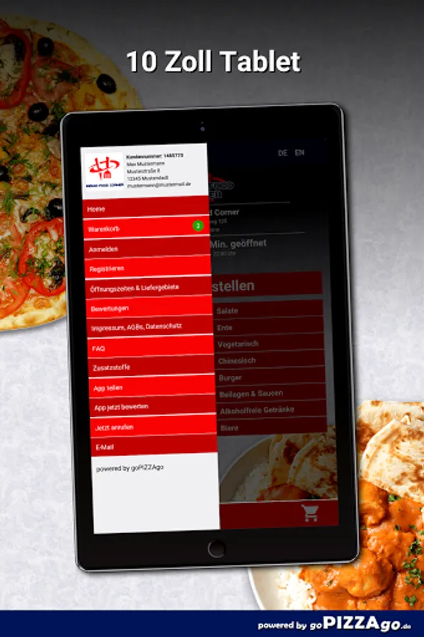Of course, you can easily order online in our online shop with a large number of feasts in our pizza delivery service. In our menu you will find 101 dishes & drinks: Pizza Capricciosa, Hamburgers, Chicken Malai Boti, Vegetarian Biryani for 9.00 euros. What do you like to order? The opening times