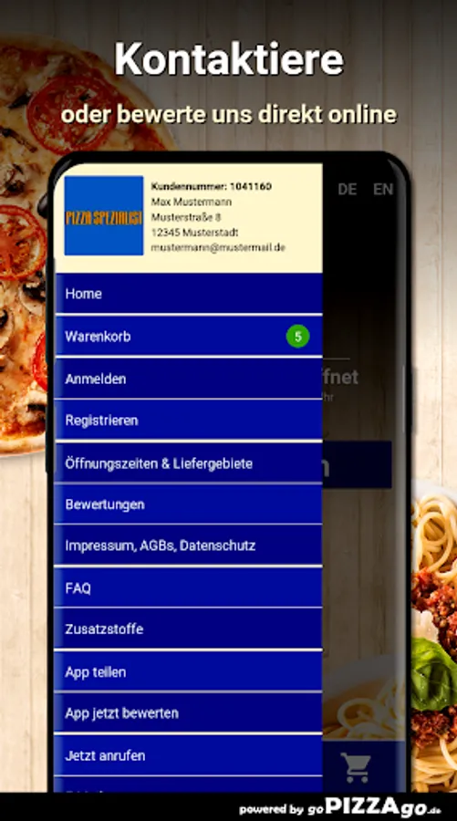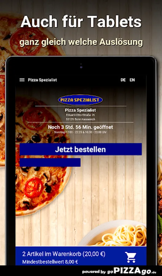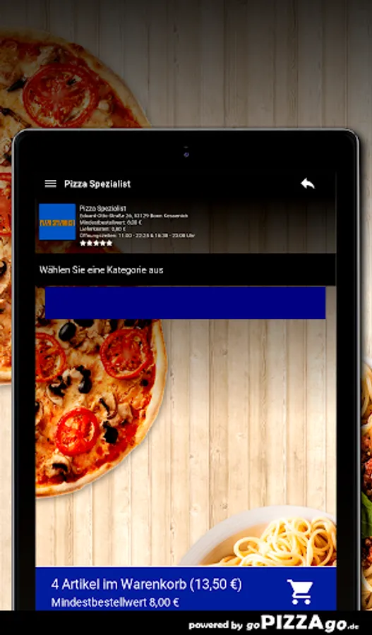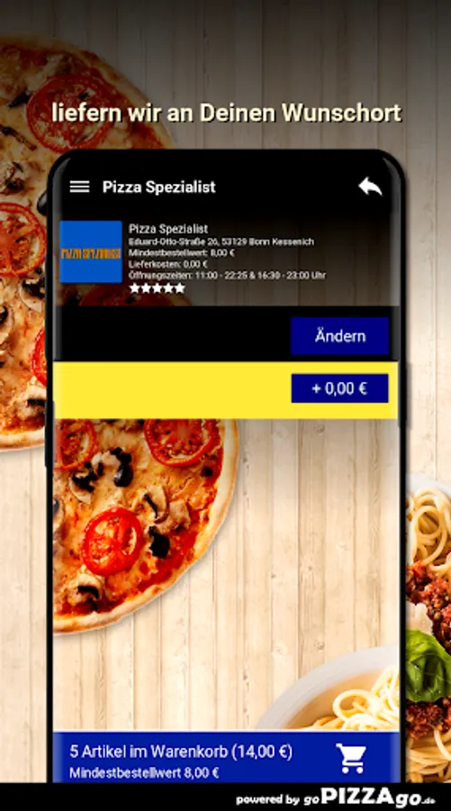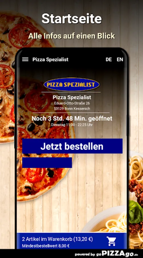 You can order and pay for freshly prepared food online from our pizza delivery specialist. A very tasty offer of 227 varied dishes (Alu Palak, Pasta Sam, Schnitzel Wiener Art). At Pizza Spezialist you can also order lunch specials - pasta, lunch specials - salad, lunch specials - pizza as a really cheap offer for lunch. For dessert we offer: Tiramisu, lemon ice cream, Ben & Jerry's Chunky Monkey, coconut ice cream. Our popular items areWe deliver at these times