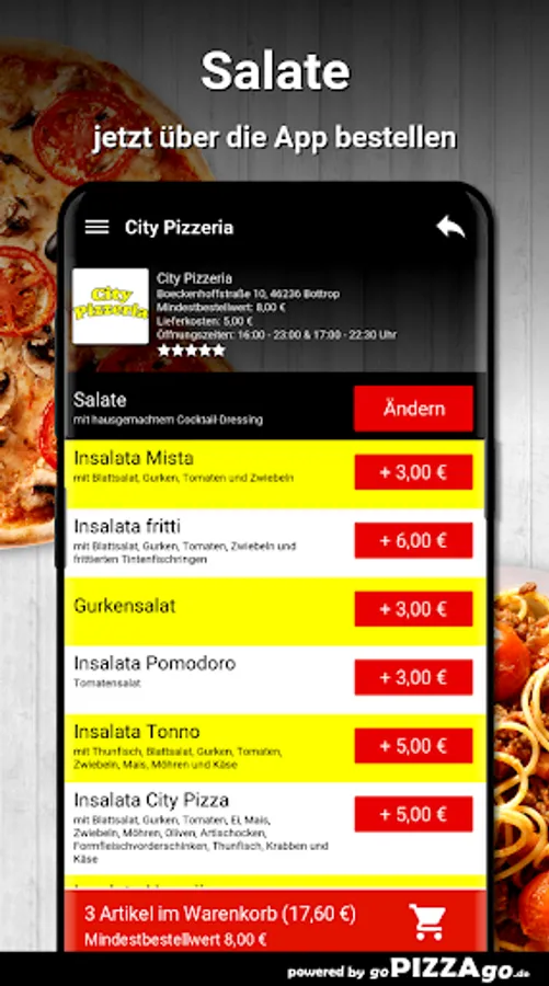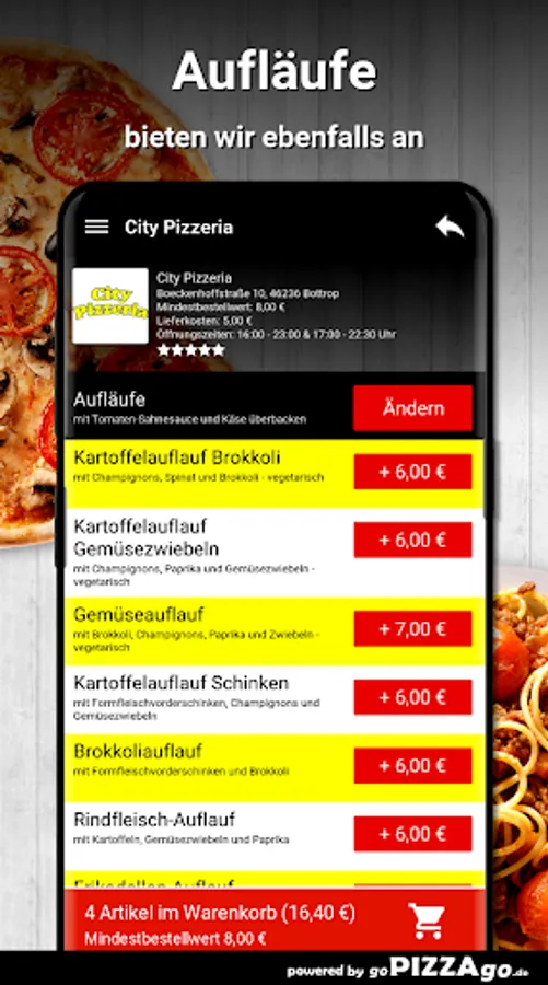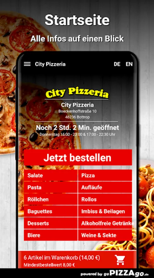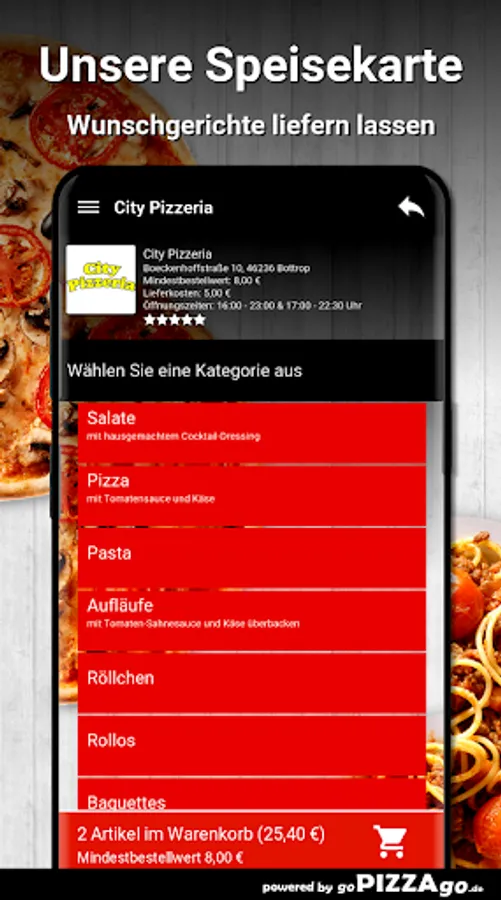 City Pizzeria - Your delivery service in Bottrop At City Pizzeria you can have pizza, baguettes, casseroles and pasta delivered or pick them up.