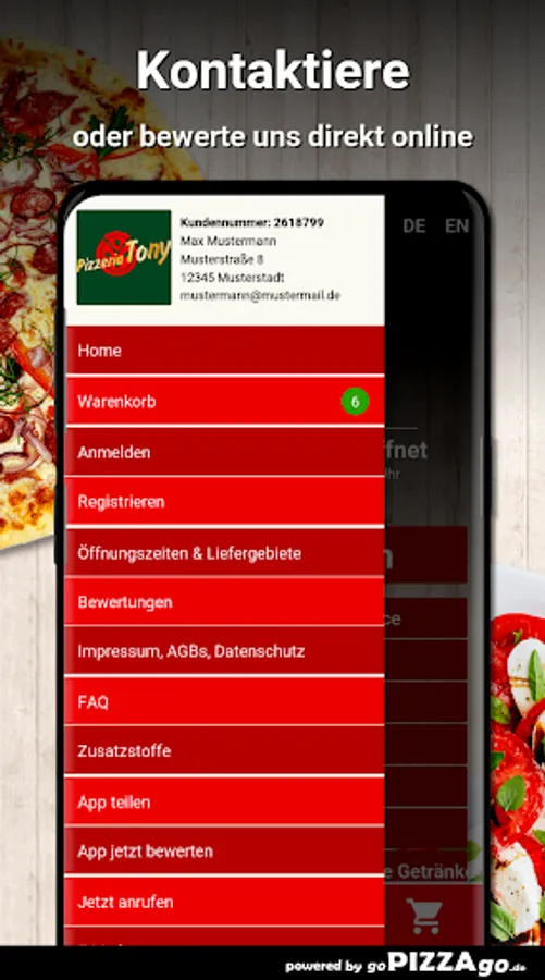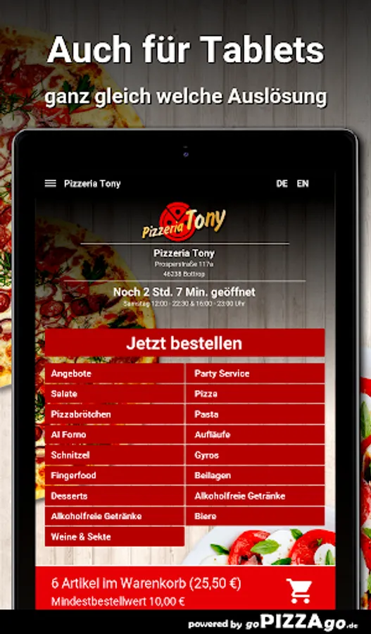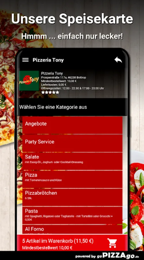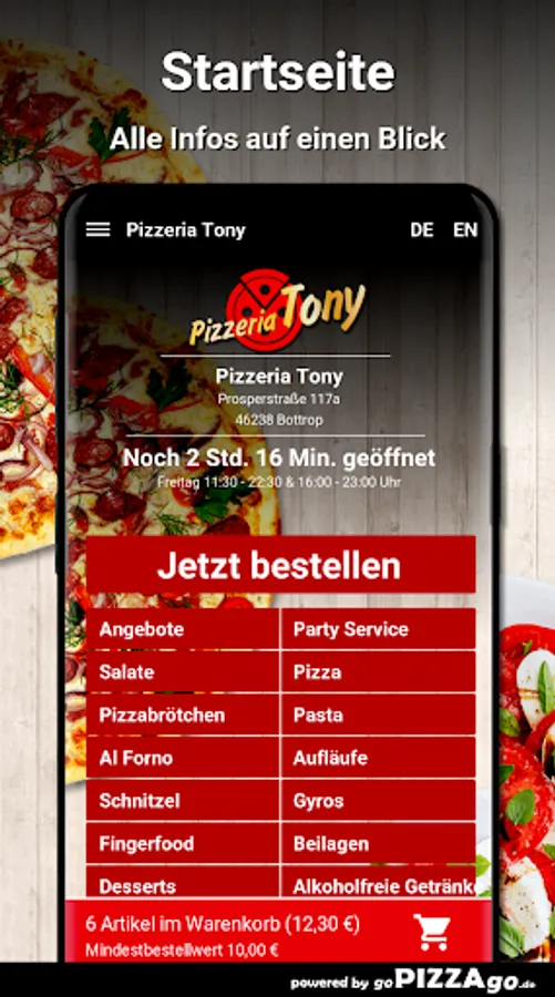 Welcome to Pizzeria Tony in Bottrop! At Pizzeria Tony you can easily order and have party service, pizza rolls, pizza, gyros, salads, casseroles, Al Forno delivered here.