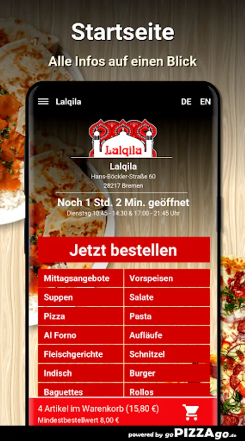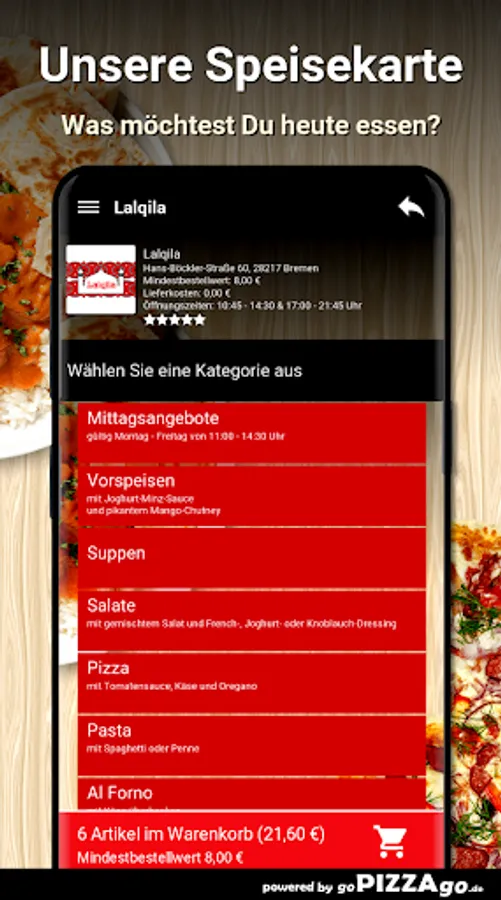 Lalqila in Bremen - we deliver your food! At Lalqila you can order starters, burgers, Al Forno, soups, finger food and have them delivered or picked up directly!