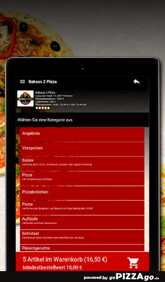 Whether breaded or without breading - at Babaas 2 Pizza in Bremen, all lovers of schnitzel will get their culinary money's worth. 6 delicious schnitzel specialties are offered by Babaas 2 Pizza online. Good gypsy chicken schnitzel will be brought to almost every place for €11.50.