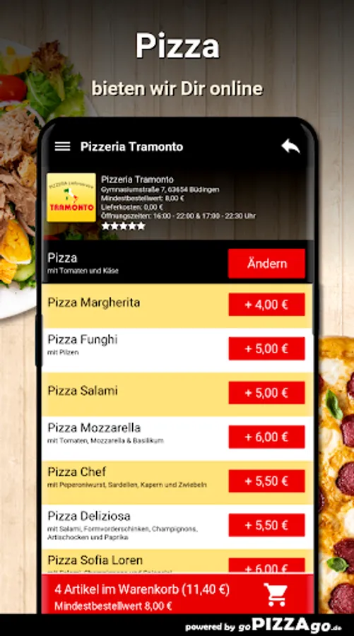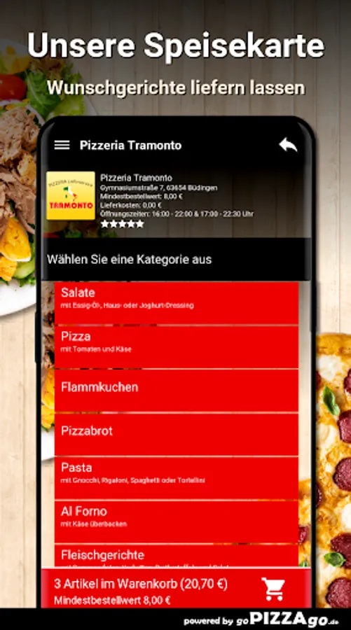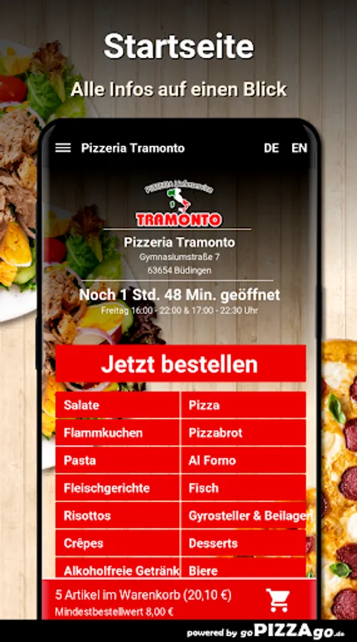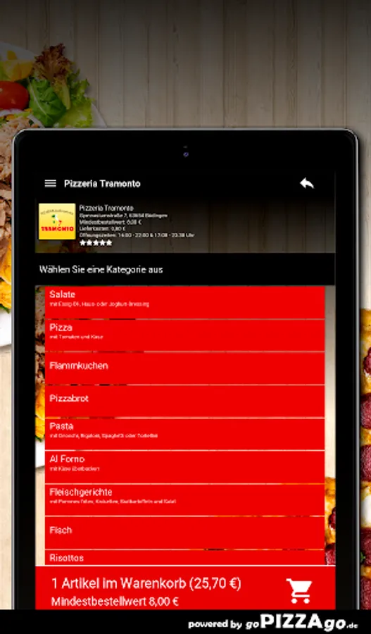 Pizzeria Tramonto - order food in Büdingen You love tarte flambée, Al Forno, risottos, pasta, pizza, meat dishes to order and have them delivered to your home?