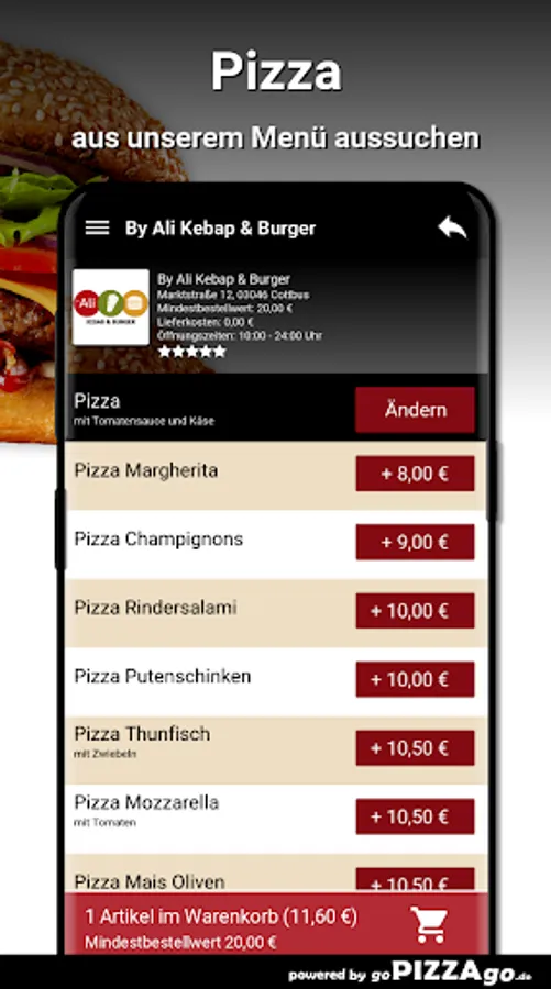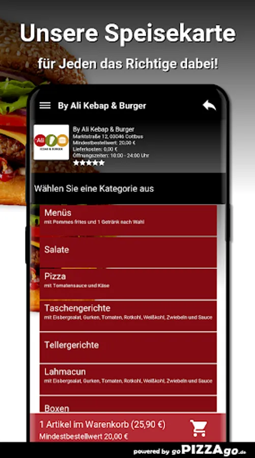 Welcome to By Ali Kebap & Burger in Cottbus. We have pizza, snacks, pasta & rice, lahmacun to order here & have it delivered.