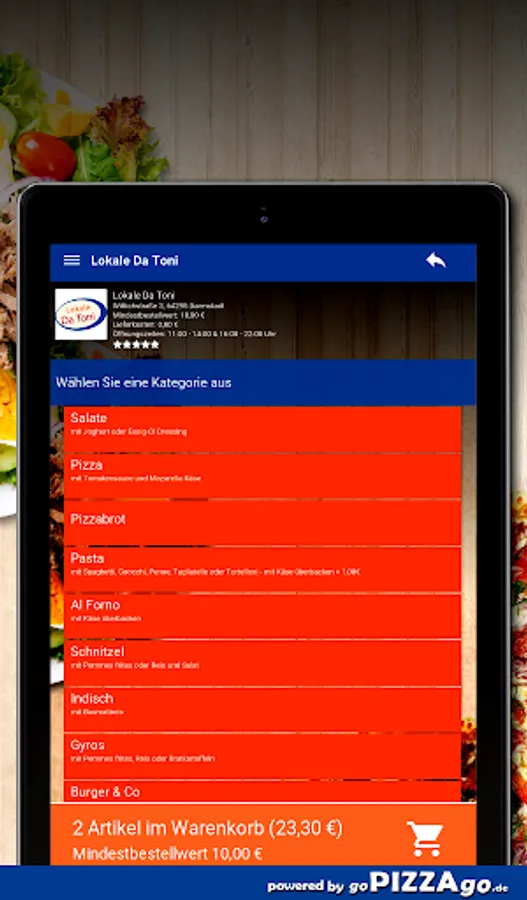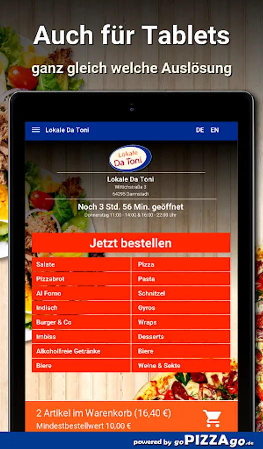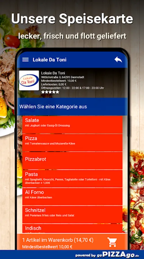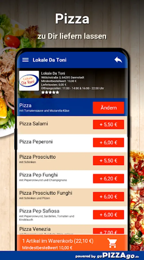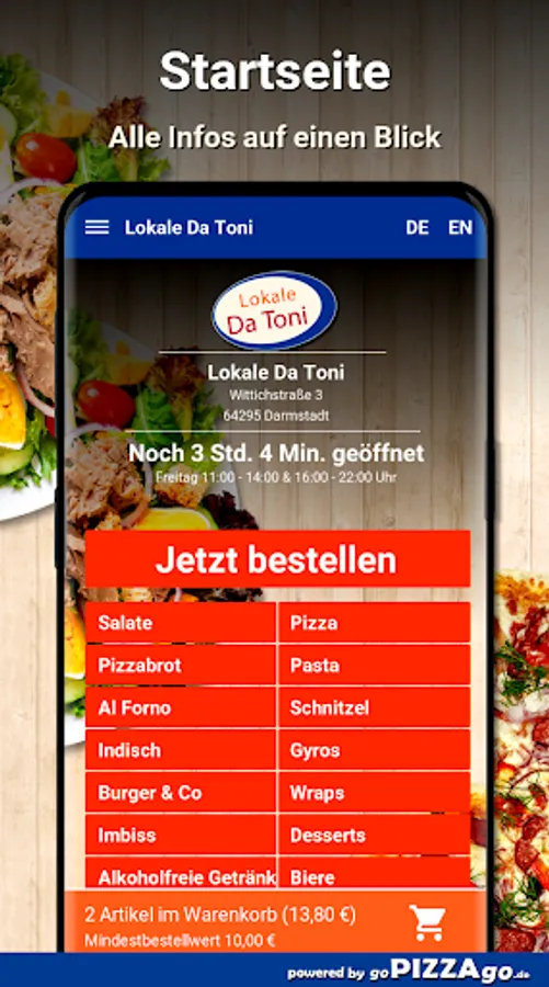 Local Da Toni - delicious food delivered to DarmstadtWe have gyros, pizza, salads, burgers & Co, Indian, schnitzel, pizza bread .. order totally freshly prepared.